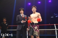 (試合後、木村選手に目線を送った?)木村選手にウィンクしたかったんで。もっと外国人選手とか強い選手と試合をして、勝っていけたらいつか挑戦できるかなと思うので、どんどん勝ち続けていきたいなと。木村選手を目指したいんですけど、Krushでピケオー選手に負けてるので、ピケオー選手ともやりたいですし。ベルトへの思いも強いんで、どのベルトでもいいので、とにかく獲りたいと思ってます。(今後は)応援していただきありがとうございました。今後また、強い選手と試合をして勝ち続けて、絶対にベルトを獲らないとって思っているので、応援よろしくお願いします」