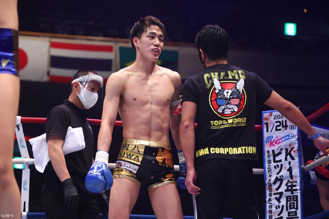 (延長は自分が取った?)そうですね。最後は自分のほうが前に出たのかなっていう。自分もボディを当てることはなかったですけど、とくにクリーンヒットももらってないし。大沢選手にクリーンヒットを当ててない状況で、アグレッシブに前に前に攻めていったら心強いかなと思ってたんで、そこは前に出て攻め抜きました。(ファンにメッセージを)コロナの影響もあって、うまくいかないこともあったんですけど、応援してくれていたファンのみなさんには感謝しています。来年はKrushのベルトを獲って、もっともっと上にいこうと思ってるんで、これからも応援よろしくお願いします」