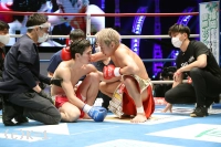 「(試合の感想は?)失神したんで何も覚えてないですね。(対戦相手の印象は?)失神させられたんで、メチャメチャ強かったんだと思います。(試合で具体的に感じたことは?)1R、インローを蹴ってたんですよ。インローを嫌がってるよっていうのを聞いてて。でも1Rに一回ダウンもらって、それがやばかったっぽくて。インターバル中に戻ったんですけど、全然回復してない状態で。