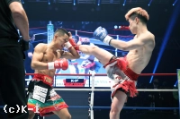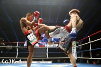 延長R、ローで出る江川に椿原はアッパー、ロー、ジャブを出しながら距離を取る。追う江川は鋭い右を出すが、ヒットせず。椿原は右ハイ左右のパンチで応戦。江川はバックキックも見せる。江川のローブローで一時中断するが、再開後、サークリングする椿原を江川は追うが、決定打は与えられず。終盤、江川はパンチを振るっていくが、最後に椿原がハイを入れて終了。判定はスプリットで椿原が取り、王座が移動。椿原が前回に続いて江川を攻略し、新王者に輝いた。