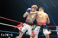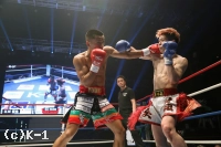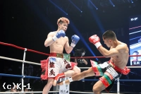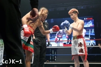 3R、江川はミドル、椿原は前蹴り。江川はミドルを出しながら前に出ようとするが、椿原はステップワークでかわし、ハイキックも繰り出す。中盤以降、江川はパンチの手数を増やし、前進して連打に行こうとするが、椿原は距離を保ちつつ左右のパンチを突き出し、ハイも交えて応戦。判定は椿原に1票入ってのドロー。決着は延長Rに持ち越された。