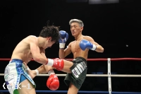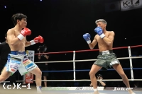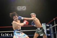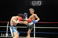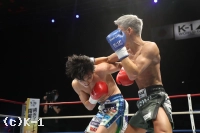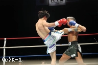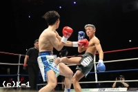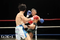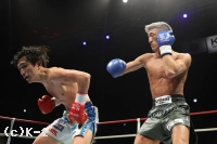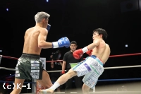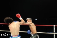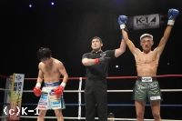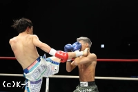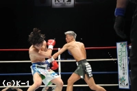 3R、黒田はやはり距離を取り、松本の踏み込みへのけん制か飛びヒザ蹴りを見せる。サウスポーの黒田は右ローを入れて右回り。松本の前進を闘牛士のようにいなす。そして松本の前進に左アッパー、左ストレートをカウンターする。ダウンの挽回に来る松本を黒田はいなして終了のゴングとなる。