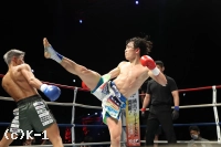 1R、松本が奇襲した飛び蹴りをかわし、黒田はサウスポーからの左ストレートで襲う。これはヒットならなかったが、その後の左ストレートで黒田は松本を2度とらえる。黒田は距離を取って松本の踏み込みを誘い、右ハイキックの直後に伸ばした左ストレートでダウンを奪う。