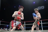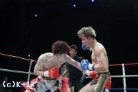 3R、椿原は距離を作って玖村が出て来るのを待つが、玖村もこれを察知して無理には出ない。踏み込んでの右ストレート、ボディストレートからの左ハイと攻める椿原だが、直撃できない。再度の左ハイは当て、右ストレートも打ち込む椿原だが玖村は倒れない。