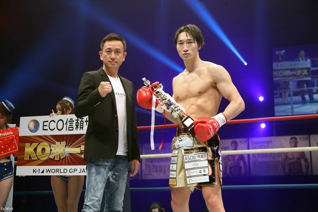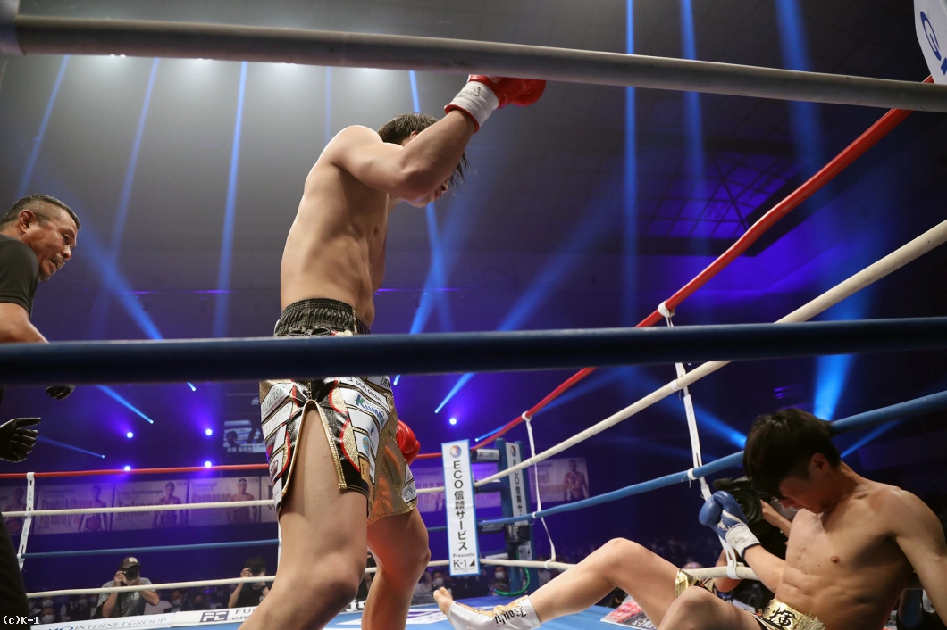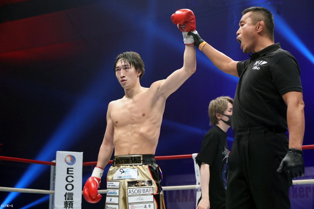 (ファンの方へメッセージを)10か月振りの再起戦をやりまして、こうして勝つ姿を見せられてほっとしています。応援していただいた方も、俺に負けて欲しいと思った方も、試合を見ていただいてありがとうございました。しっかりウェルター級のベルトを獲って、K-1の次の顔は必ず俺だと思っているので、それを有言実行していきます」