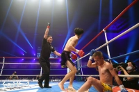 3R、西京はミドル、ロー。竜樹も同じ技を返す。竜樹はガードを上げてにじりよって攻めんとするが、西京はボディ打ち、右クロスと決めていく。竜樹が圧を掛けてくると、西京は周囲を回ってジャブと飛びヒザ、連打といなし、終了間際に前へ来た竜樹に右ショートフックを当ててダウンを奪い終了した。判定は30-27、30-26、30-27の3-0で西京。ライト級転向後、2連勝となった。