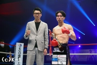 「(試合の感想は?)試合内容的には全然納得できてなくて、最後ダウンは取ったんですけど、課題の残る試合でした。(相手の印象は?)何発か顔も腹もいいの入ったと思うんですけど、全然効いた素振りがなくてタフだなっていうのと、一発一発の攻撃が思った以上に固かったですね。(ダウンを取るまでは攻めどころを探っていた?)上と下と脚に散らすというのを課題にしてて、(ダウンを取った)あのパンチも狙ったパンチじゃないんで、マグレなのかなって感じですね。(この先の目標は?)この試合内容じゃタイトル戦線にはほど遠いんで、1戦1戦、納得いくような試合をしていくのがこれからの目標ですね。(ファンの方へメッセージを)今後も1戦1戦、自分もお客さんも納得できるような試合をしていきたいと思ってますので、まだまだご注目よろしくお願いします」
