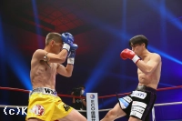 2Rも竜樹はガードを緩めない。ならばと西京はボディストレート、前蹴りと放ち、その後で右のパンチで顔面を狙う。竜樹は構えを変えず、鋭い右の蹴りを返す。西京は圧力をかけて竜樹をロープに詰める。そこからボディ打ち、ローと竜樹に当てていく。