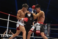 再開すると佑典はすぐに向かって左ストレートを打ち込むが、斗麗も逆に左ストレートを打ち込んで倒しKOした。