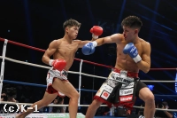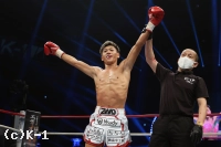 (課題にしていたKOを実現できて)ホンマに力が抜けて、攻めるとこだけ攻めて効いたら行って。ダウンしても、いつもやったらバーッと行って終わってたところを一度離して作り直してできたんで、成長できたかなと思ってます。練習通りやれたんで、よかったです。(相手陣営にチャンピオンもいましたが)椿原選手が『アニキ』って言ってたんで、次は椿原選手が出てきてもいいんちゃうかなと思ってます。(ファンにメッセージを)僕はまだまだここから強くなっていくんで、絶対チャンピオンになるんで、これからも応援よろしくお願いします」