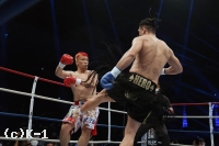 EXR、カリミアンは前に出てプレッシャーを掛ける。京太郎のパンチを浴びてももっと打ってこいと挑発する。京太郎はボディストレートこそ当てるが、顔へのパンチはブロックされる。だがカリミアンのバックブローを空振りさせ右ストレートを当てる。カリミアンはダッシュしてのヒザ、前蹴りで襲って終了する。