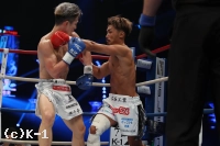 3Rも村越はロープを背にするが左ミドルを連発。ヒットを狙う西元だが、それを読み取り村越は逆に左ストレート、右フックのカウンターと当てる。バックブローを見舞う西元だが当てられない。ボディストレートから左ハイと攻撃を散らす村越。テーピングの目立つ村越の右脚にローを入れ、パンチで迫る西元だが、村越はボディワークでのディフェンスと巧みなパンチのリターンで西元をいなす。判定は30-27、30-27、30-26の3-0で村越。自分の試合をやり通して勝利した。