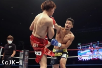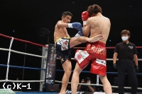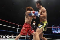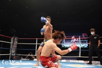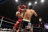 黒木が立っても大久は右ロー&左右の強打、ボディ打ち、右ミドルと効かせていく。打ち返す黒木だが、大久は止まらず右ロー、右ストレート。回復してきた黒木は前に出るが、そのパンチの内側を大久が右ストレートで打ち抜き、黒木はダウン。大久がリザーバーの権利を得た。