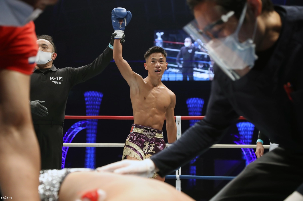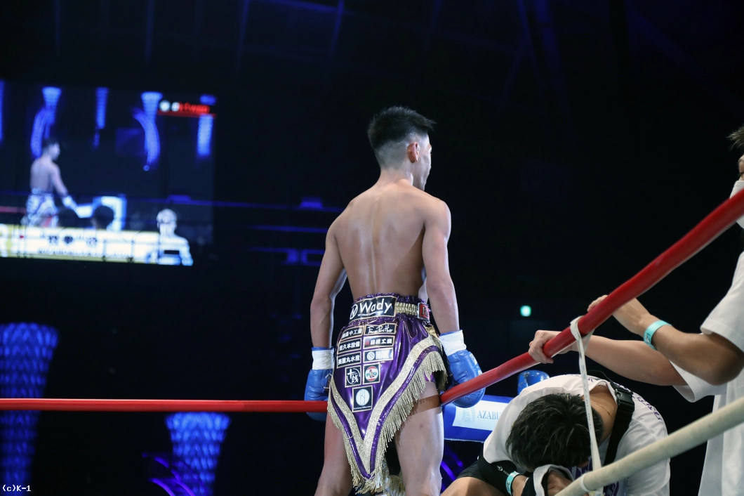 3R、光佑の入り際に迅が右カーフ、右フック、右バックスピンと多彩な技を合わせる。光佑へのローブローで一時中断。再開後に右ストレートから右カーフキックで迅がダウンを奪う。立ち上がった光佑が前に出るも迅が再び右カーフ。追撃のワンツーが空を切るもそのまま光佑が2度目のダウン。レフェリーが試合を止め、迅が2年振りの復帰戦を3R1分19秒KO勝利で飾った。