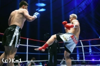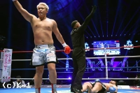 1R、サウスポーで中央に立った加藤はそこから一気にコーナーまで谷川を詰めると左ストレートと右フックを打ち込み、ガードごと谷川をなぎ倒してダウンを奪う。立ち上がった谷川はロー、掛け蹴りで反撃。そこからスッと前に出ると右ハイキックを放って側頭部をとらえ、加藤がばったりと倒れ、谷川が逆転KOを収めた。