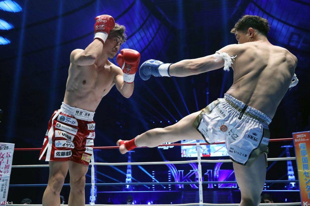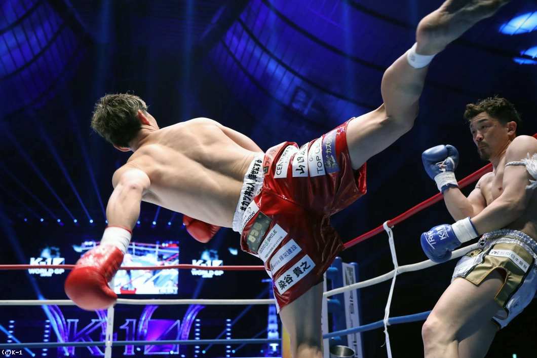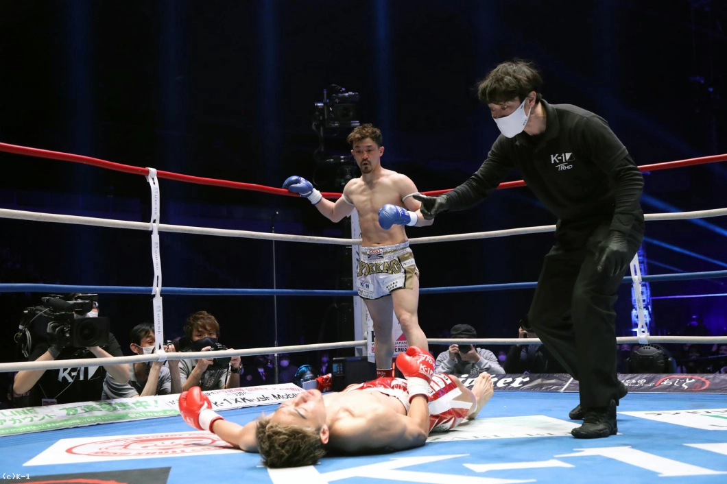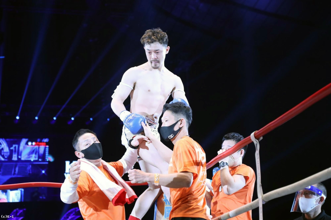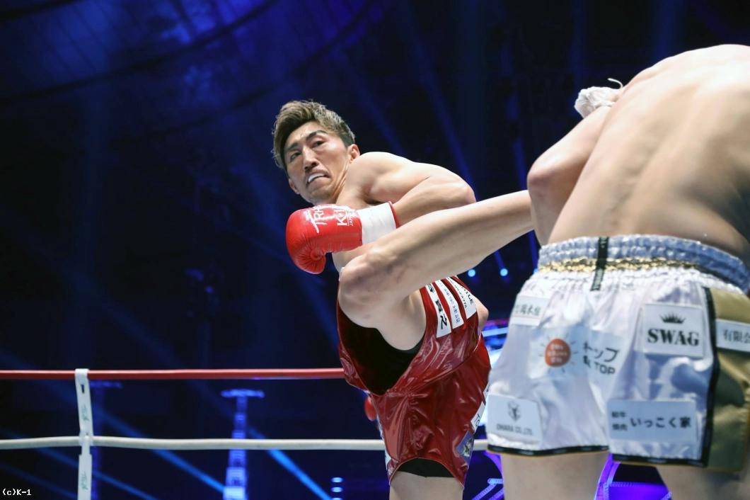 (大変な時期もあったと思うけど、チャンスを一発でものにした流れは振り返ってみて?)これは本当に格闘技の神様に、もっと言えばK-1の神様かわからないけど満たされているなと思いますし、本当に何もなかったころ、中学三年生の頃にテレビでK-1を見て魔裟斗さんを見て自分もこの舞台に上がりたいと思ってキックボクシングジムを調べて、家から通える大和ジムに週1で通い出して。今までつながってきていて。勝ったり負けたもあったし、今日で64戦。勝ったり負けたりもしてきたし、この新生K-1でも歯がゆい思いもしてきましたけど、全てが繋がって今に来ているので、どこかのピースが一つでもズレていれば今日のこのタイミングはないと思うので、全て必然だなと思うし、そう思うと過去の悔しいこと悔しいこと全部に対しても、今の自分をそういう経験が形成しているので、本当に感謝しかないな。人生全て必然。全てに感謝だなと改めて、今この結果になったことで思いますし、本当にこれからだなと気が引き締まる思いでいます。
