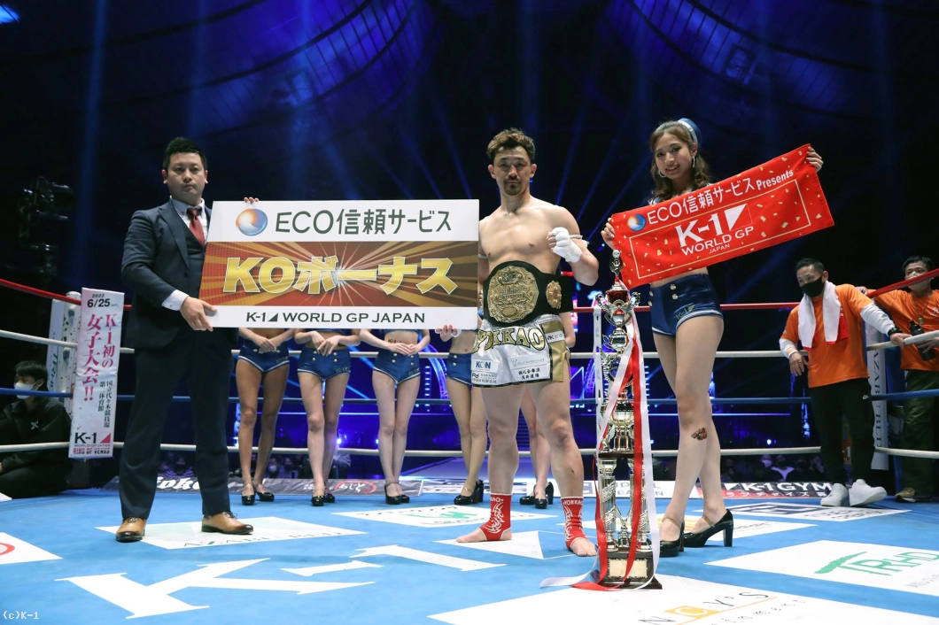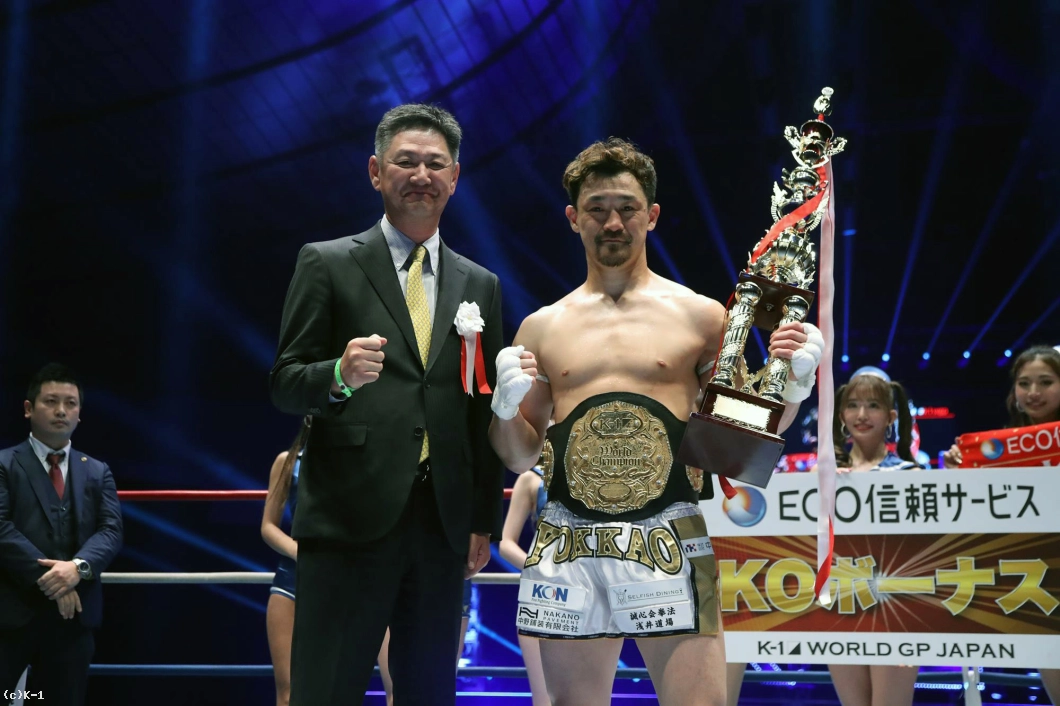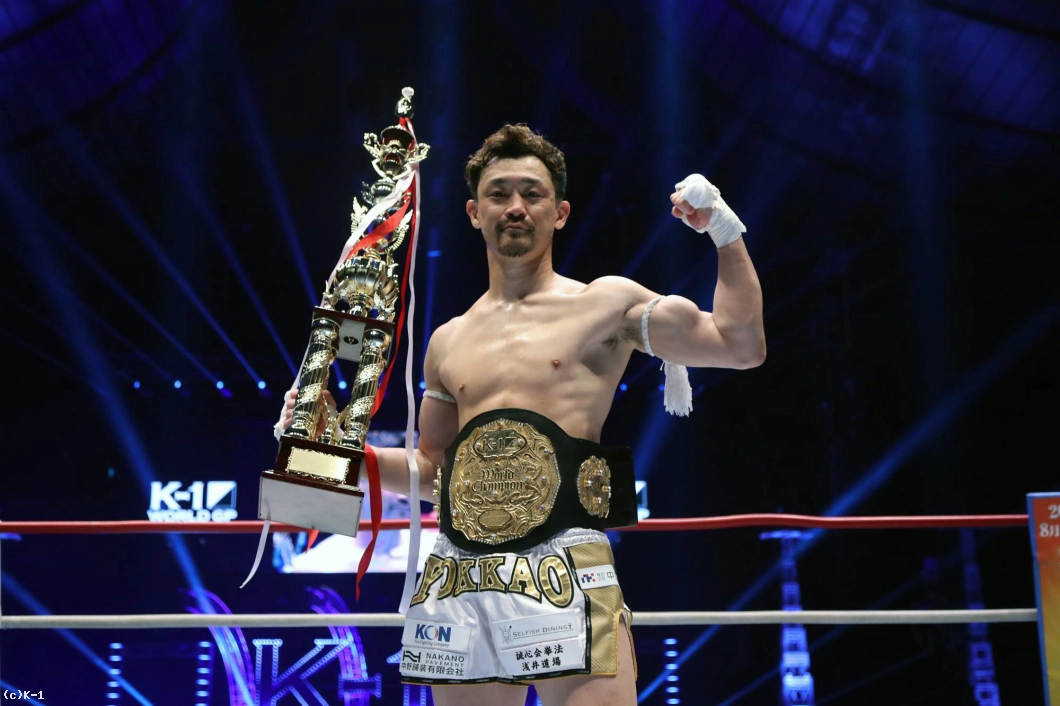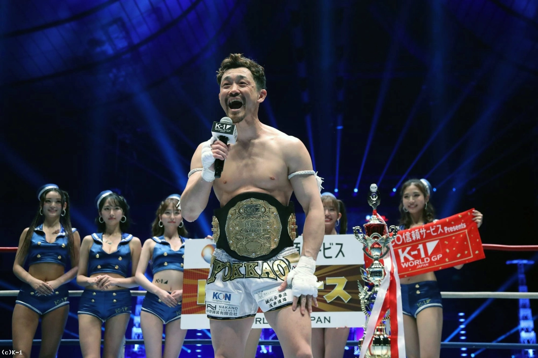 (チャンピオンになってこれからどうしたい?)K-1王者として、K-1を体現する者として、KOをたくさんしていきたいですし。僕のスタイルってKOを狙っていなくて自然と相手が倒れているKOだと思うので、改めてそういう自分の良さも感じましたし、もっともっと短所をカバーしながら長所を伸ばしながら、自分の色をしっかり出していきたいと思います。本当に。試合前は『12年前にK-1に人生を変えてもらいました。今回は自分がK-1で人生を変えます』と言いましたけど、試合後で見ると結果またK-1に人生を変えてもらったと思うくらい、K-1は僕の夢の舞台だし今も変わらないので、先ほどの試合が終わった瞬間からK-1王者として胸を張って日々精進していきたいと思います。