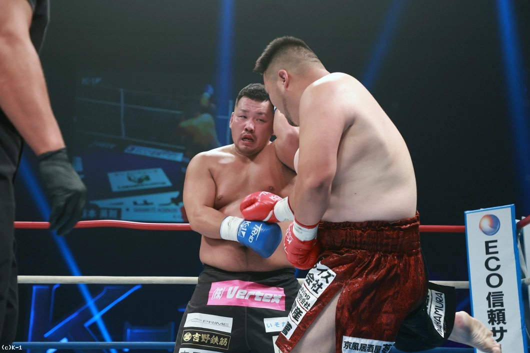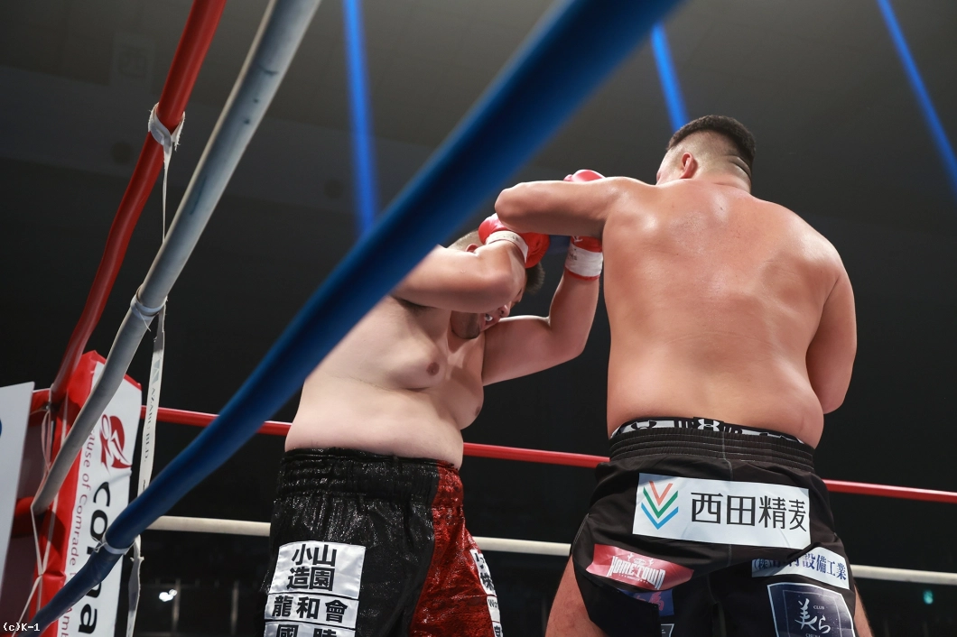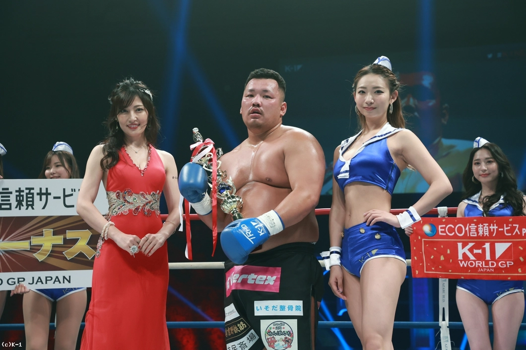 「(試合の感想は?)1Rも2Rも相手が有利な立ち位置というか、これは呑まれるんじゃないかなという感じがあったので、しっかり自分の、『動けるデブ、パンチ担当』なんで、そこの役割ができたかなというところです。