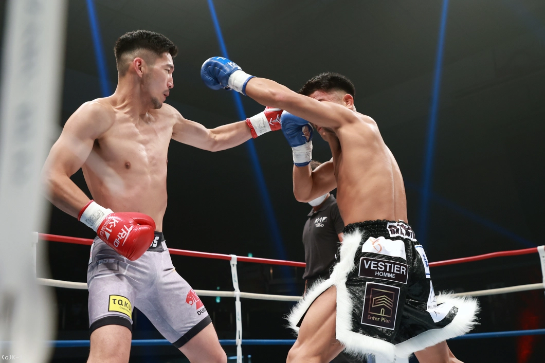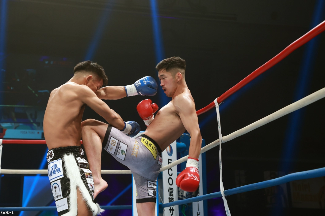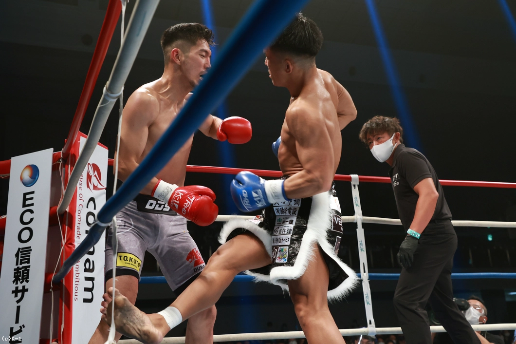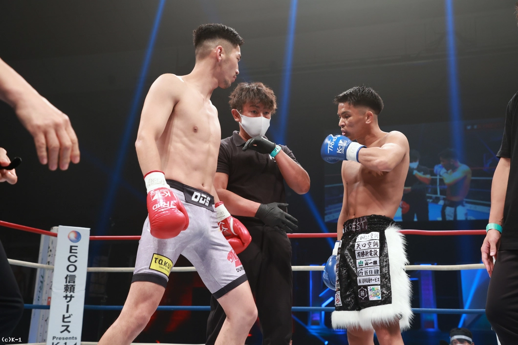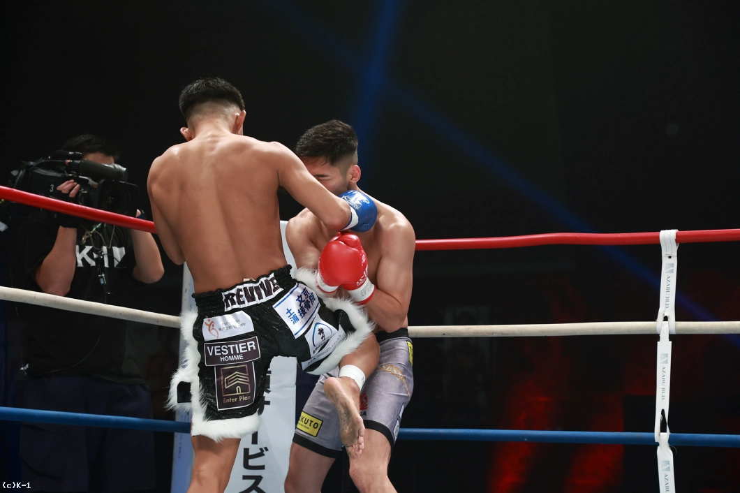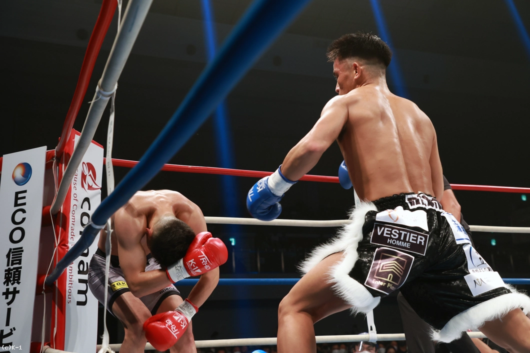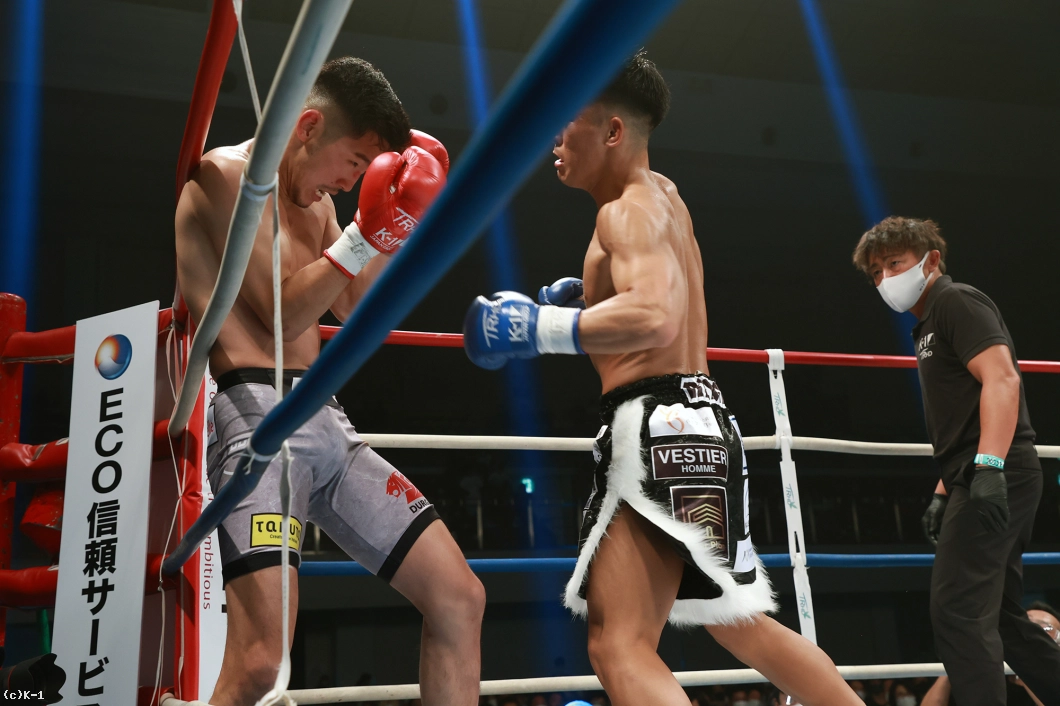 立ち上がった篠原は顔からボディに左右フックを連打するが与座はこれを防ぎ、再びのカーフキックからアッパーをフォローしKOで勝利した。