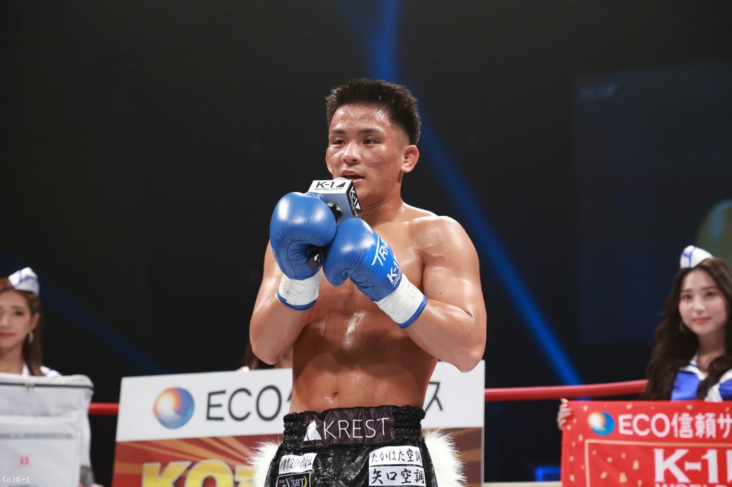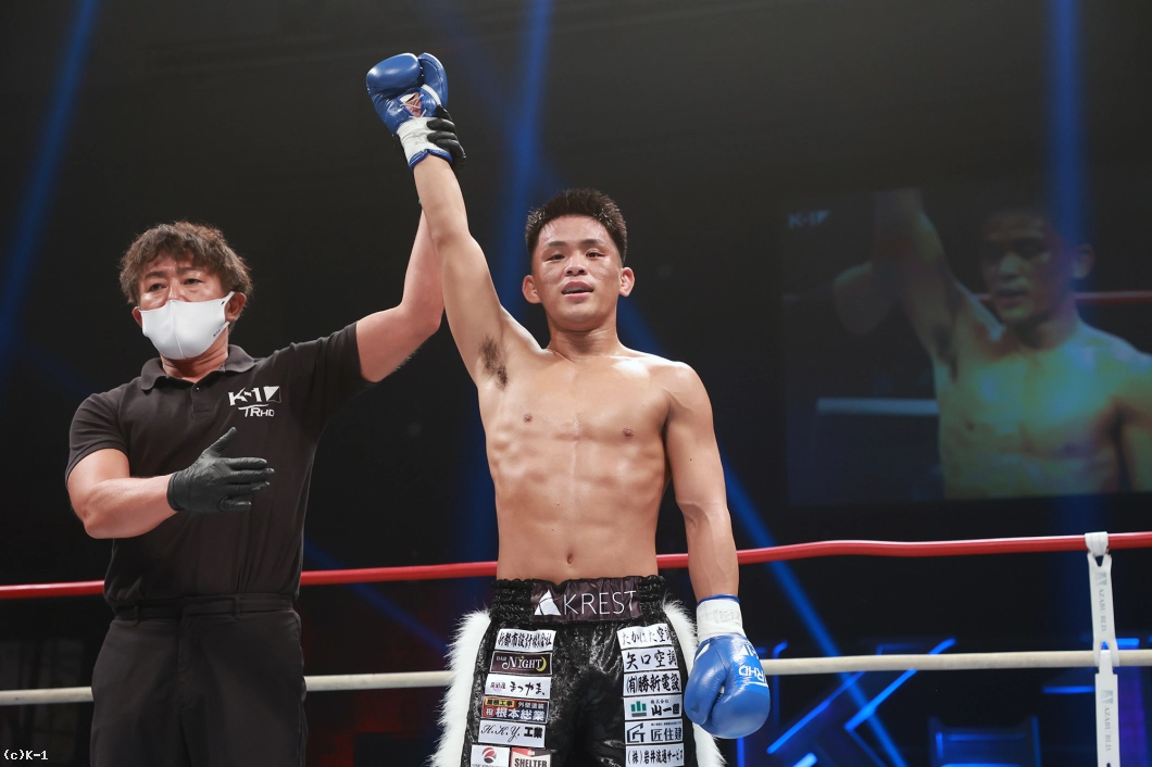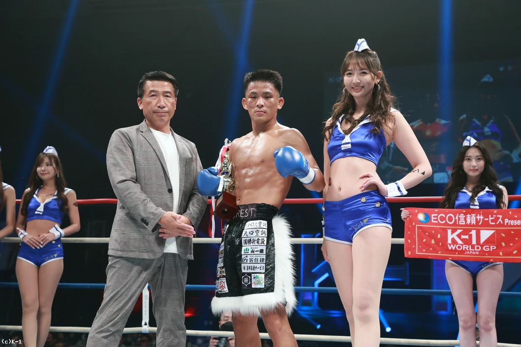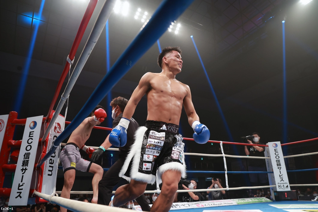 「応援ありがとうございました。言いたいことは一つだけで、自分がこれからK-1ライト級、そしてK-1を引っ張っていける存在になりたいと思います。そのためにはチャンピオンじゃないといけないので、そこにいる朝久選手、怪我を治して自分ともう一回戦ってください。(リングサイドの朝久が応じた様子を見せると)じゃあ決まりってことでよろしくお願いします」