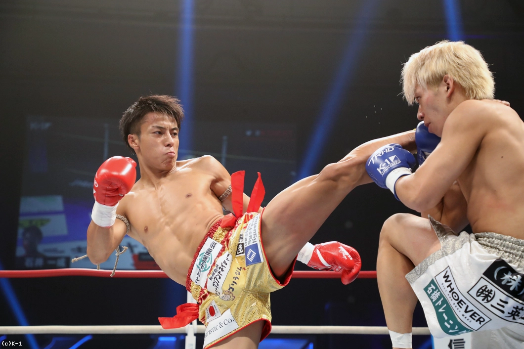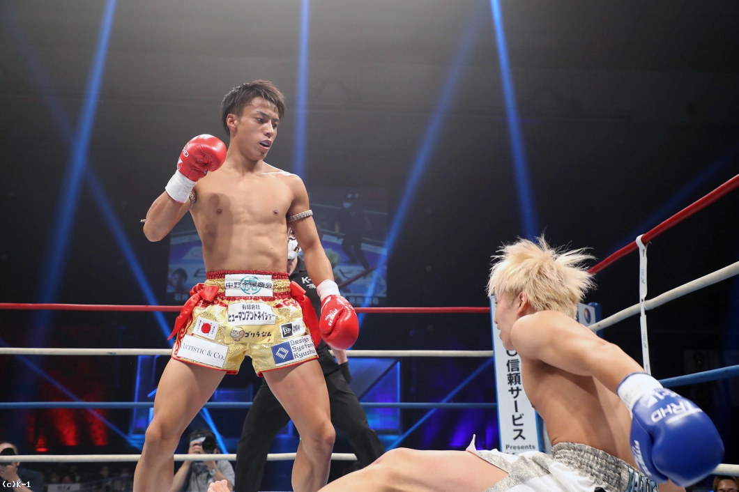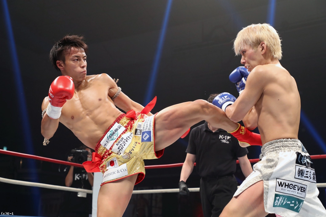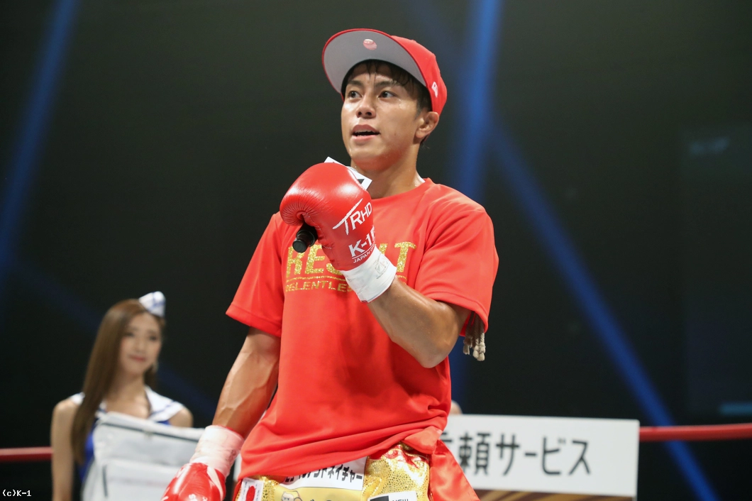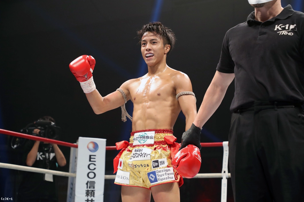 「僕のK-1デビュー戦ということで、たくさんの方が集まって頂いて嬉しいです。ありがとうございます。18年前に魔娑斗選手を見てキックボクシングを始めて、18年経ってこの舞台に立てたことを嬉しく思います。53㎏のK-1のベルトを巻きたいと思います。K-1の53㎏級には強いメンツが揃ってますので、みんなと戦って来年、福岡でトーナメントを開いてほしいと思ってます。黒田選手、池田選手、ぜひ今年僕とどっちかやりませんか? 僕の存在を分かってない人もいると思うので、トーナメントで優勝した選手かベルトを獲った選手と僕が戦ったらどうなるか想像ができると思うので、よろしくお願いします。格闘技界を盛り上げるために頑張りますので、よろしくお願いします」