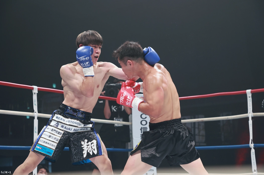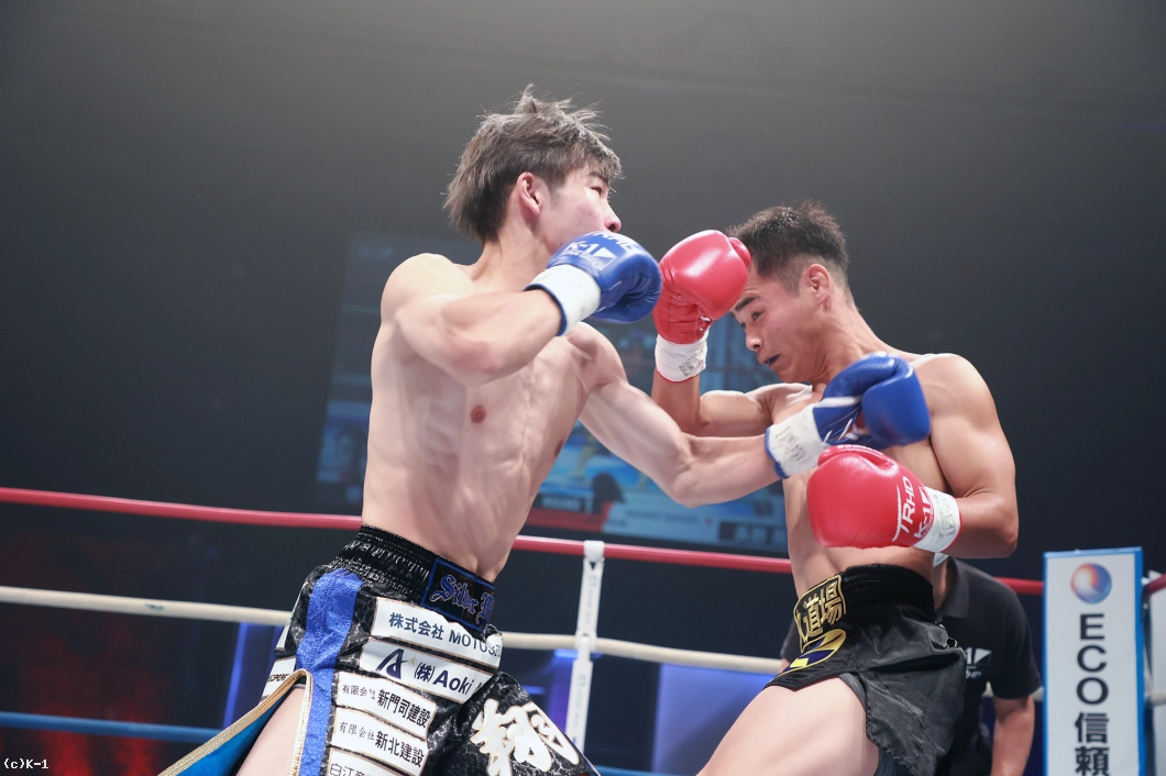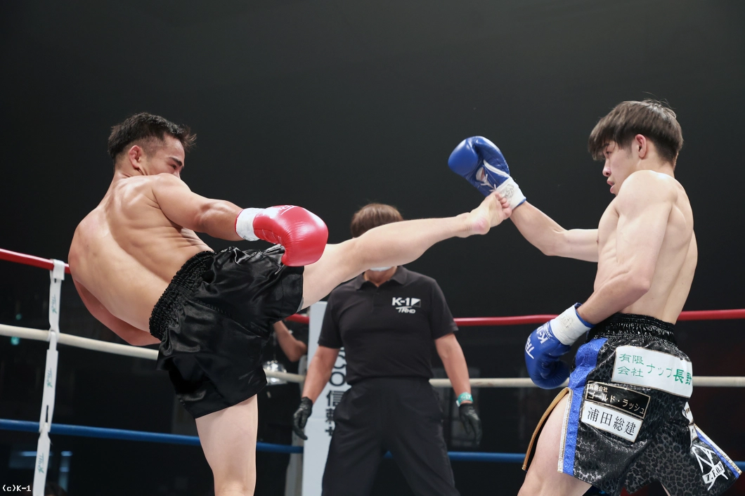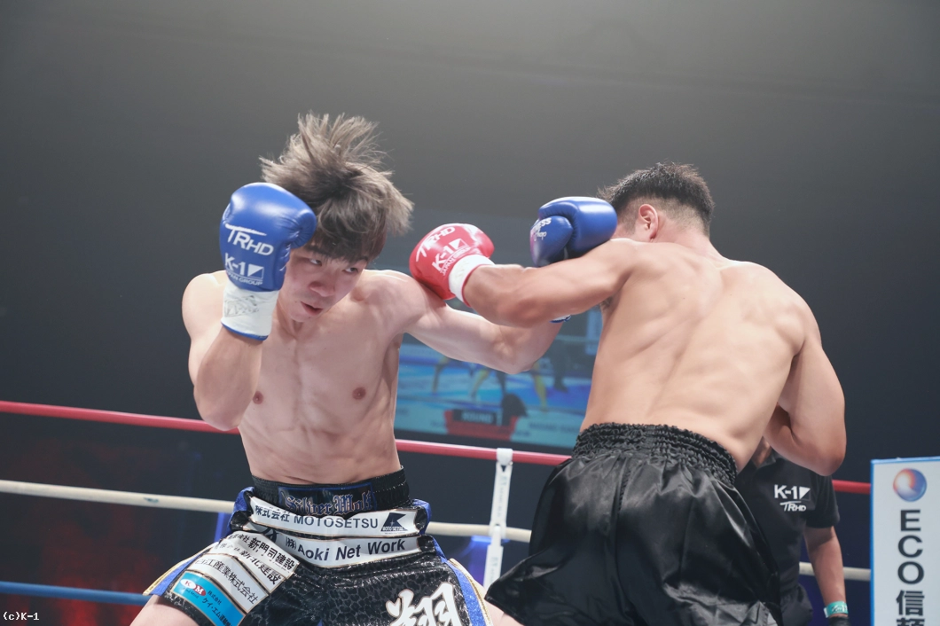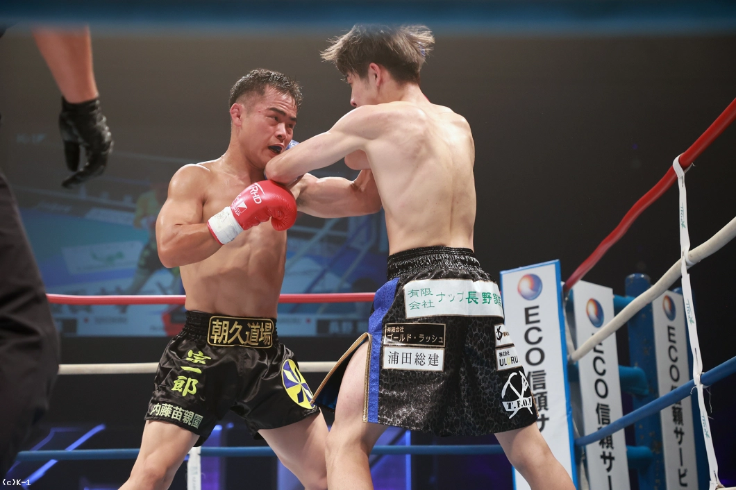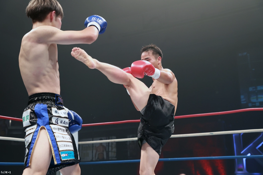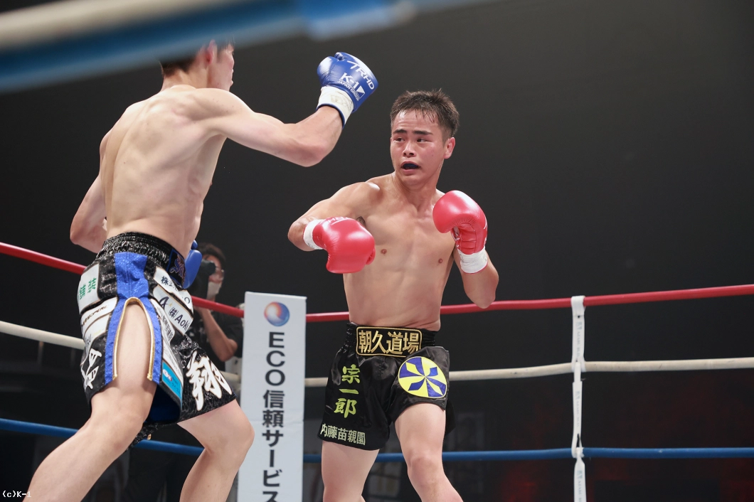 立ち上がった宗一郎はサウスポーにもスイッチしながらフックで向かう。長野はパンチに加えカーフキックも見せダメージを与える。前に出て追う宗一郎だが、長野はバックステップしてかわしていく。