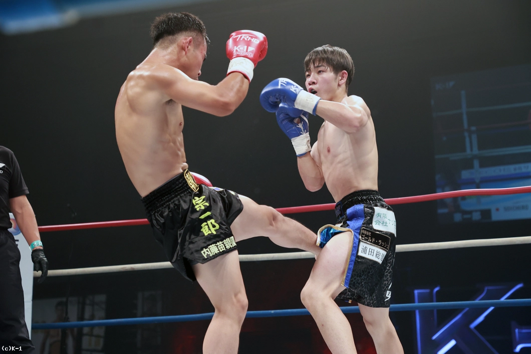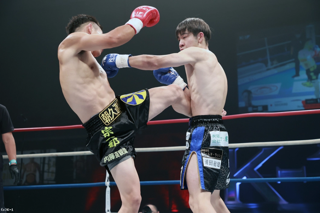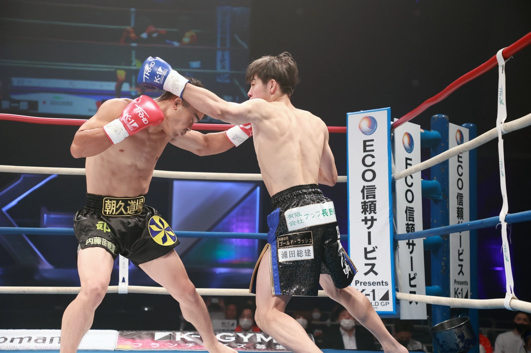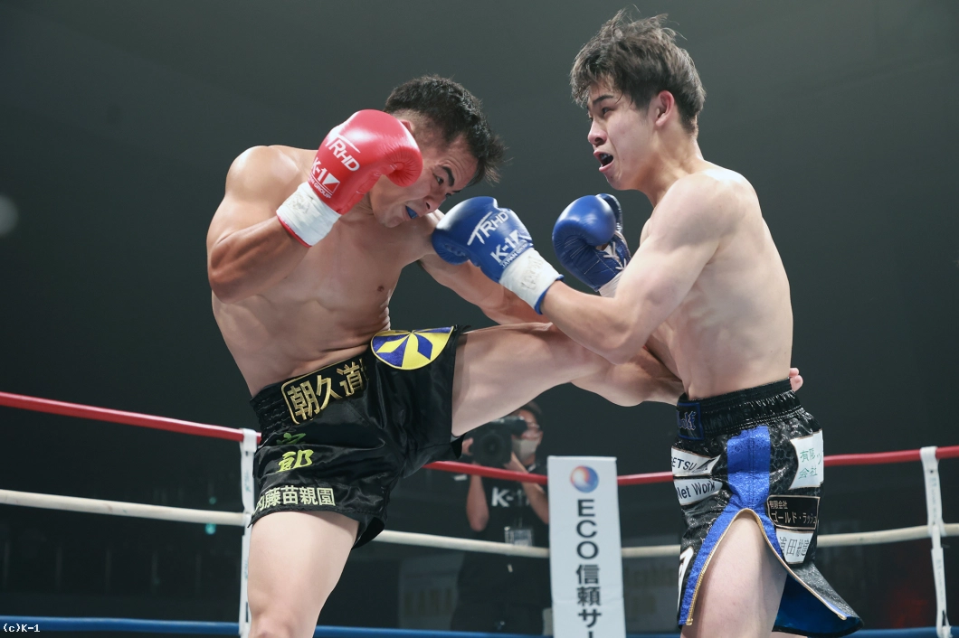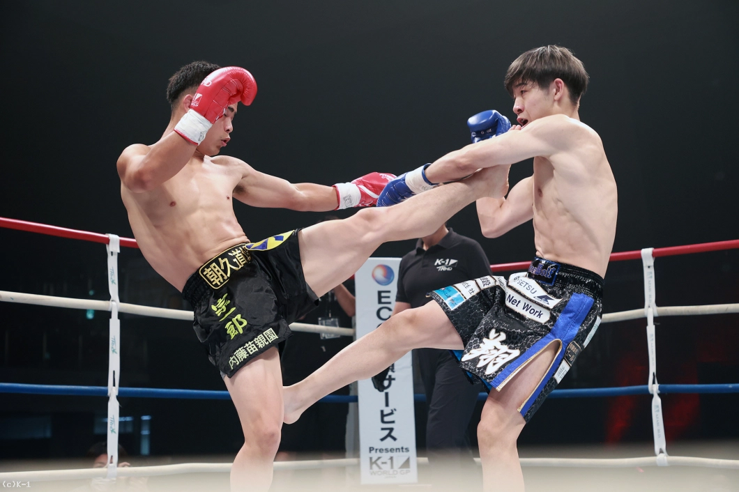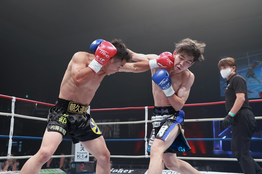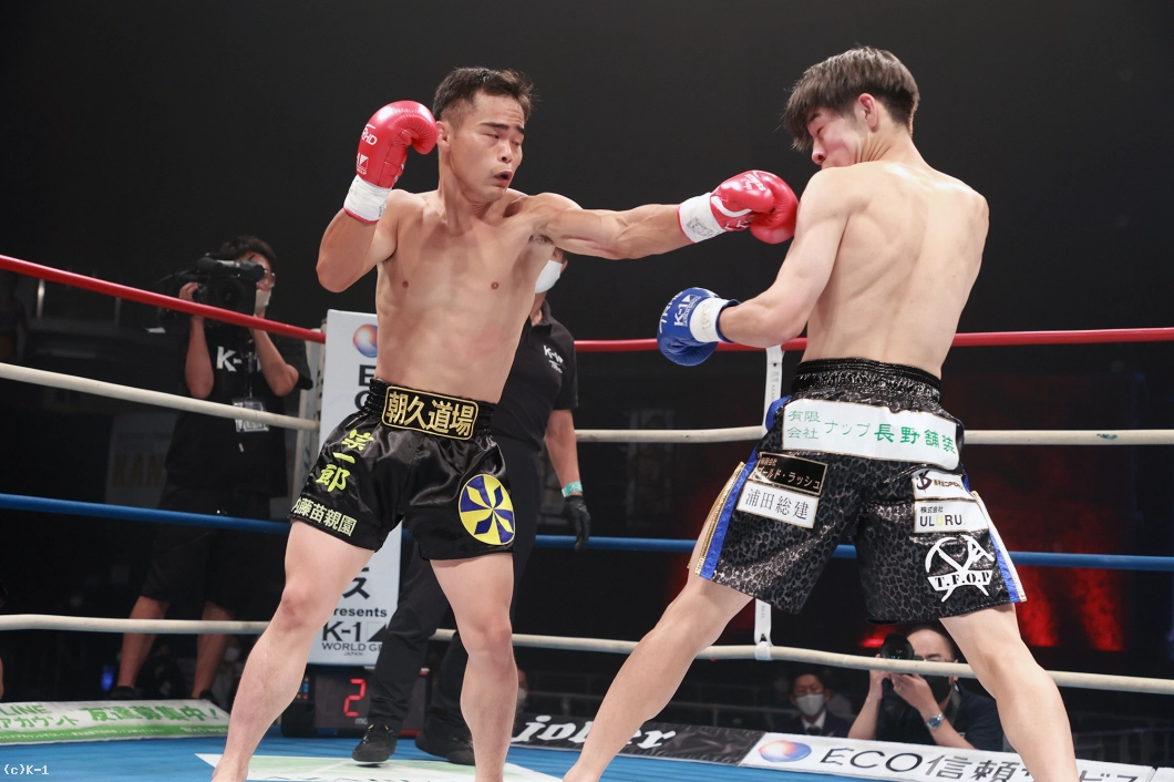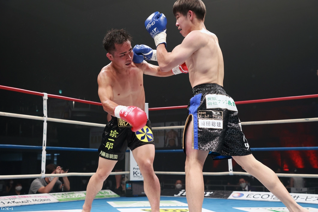 立ち上がった宗一郎はサウスポーにもスイッチしながらフックで向かう。長野はパンチに加えカーフキックも見せダメージを与える。前に出て追う宗一郎だが、長野はバックステップしてかわしていく。