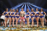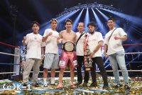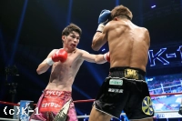 (決勝で勝利できた一番の理由は?)欲望です、ベルトがほしいっていう(笑)。その気持ちが強かったですね。ベルトがなかったら、お世話になってる人たちに恩返しって言っても言葉でしかできないですけど、ベルトがあることでちゃんと恩返しできるんじゃないかと思ってたんで。絶対にほしいと思ってたんで。(これからどういうチャンピオンになっていきたい?)まあ、朝久選手がいたからスーパー・フェザー級に戻したんですけど、朝久選手に勝って相手がいないんで、どうしようかなって思ってます。