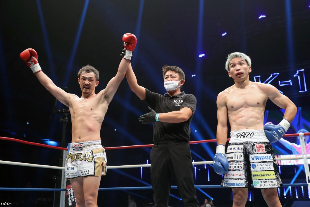 1R、まずはお互いステップを踏みローを出し合う。そこからジャブを突き合い距離の探り合いとなる。ラウンド終盤、佐々木はパンチから繋いだミドルを当てるが、大和もすぐさまフックを返す。2R、両者は距離を近くして攻防し、佐々木が前蹴りで大和を転倒させる。大和は右フックをスイングしていくが佐々木は当てさせず左ジャブを正確に突く。大和は踏み込んで左フックをヒット。続けて左ハイも佐々木に決める。しかし佐々木もストレート決めラウンドを終える。