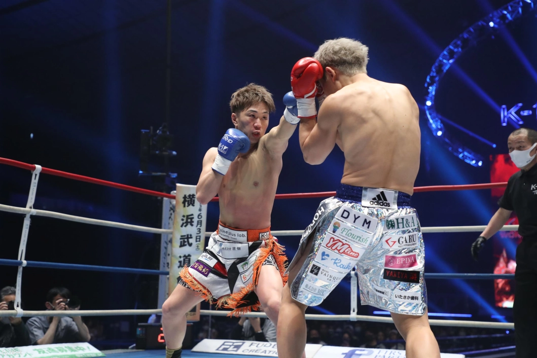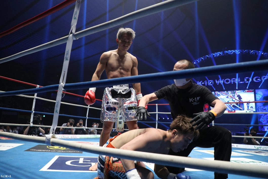 2R、國枝はジャブを手数多く放つが、大岩はブロックでこれを阻み、ロープに詰めると右ストレート。これで國枝を打ち倒し、KO勝利を決めた。