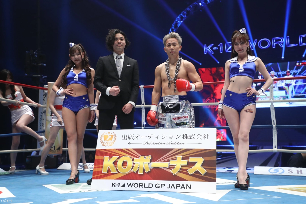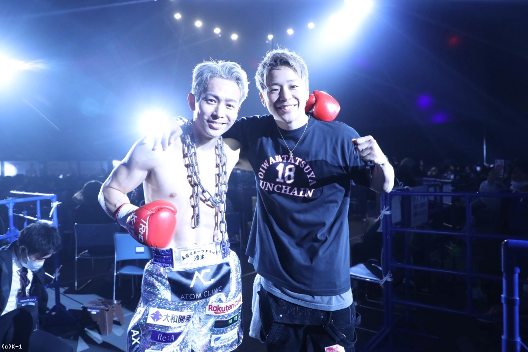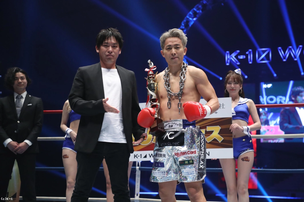 「鎖復活しました。國枝選手に感謝しかない試合でした。格闘技はリングに上がるまでが本当に大変で、全ての選手がケガと向き合いながら、いろんな方のサポートのおかげで出場して試合ができます。みなさんにありがとうございます。小澤選手、ケガはつきものなので、しっかり治してもらってまたどこかで戦えたらいいなと思います。倒してこそのK-1だと思っているので今日はそれが最低限クリアできて、どんどん倒して、K-1は大岩龍矢だっていう風になるので応援よろしくお願いします」