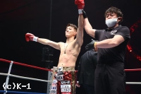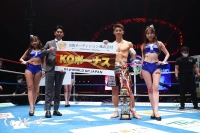 「応援ありがとうございました。去年THE MATCHでたくさん期待して頂いたんですけど、期待を裏切ってしまって申し訳ございませんでした。69kgで初めての挑戦だったんですけど、どうですか、この階級で僕強くなってますよね? どんどん世界の強豪に喧嘩を売って、最強を証明し続けるので、これからも応援よろしくお願いします。残り3試合最後まで楽しんで、セミファイナルで与座のセコンドにつくので応援してやってください」