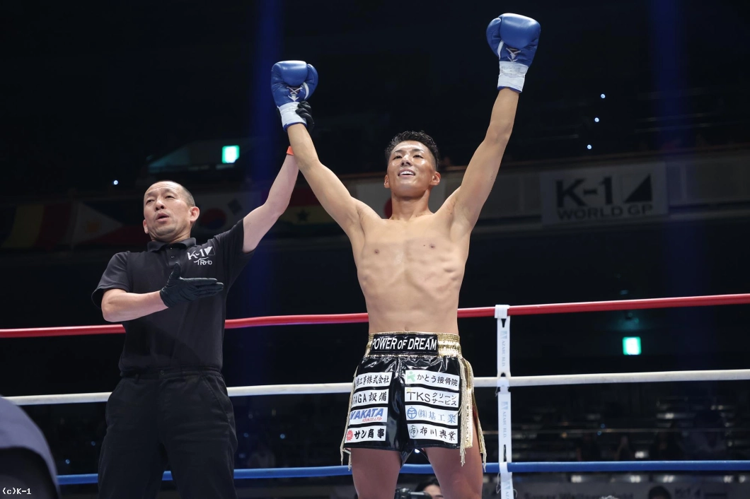 「対戦してくださった晃貴選手ありがとうございました。事故から復帰して3戦目でK-1に出せせてもらって、いい形で勝てて嬉しいです。また1Rで倒すつもりで戦います。岩尾力という名前を覚えていってください」