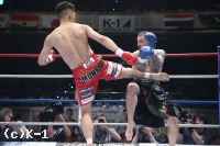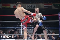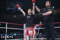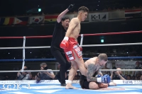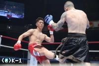 1R、野杁はサウスポーでスタートするもすぐオーソドックスになり、右カーフキックを効かせていく。そして右ミドルをボディにめり込ませると、これでパラスキフを苦悶の表情で沈めKOした。