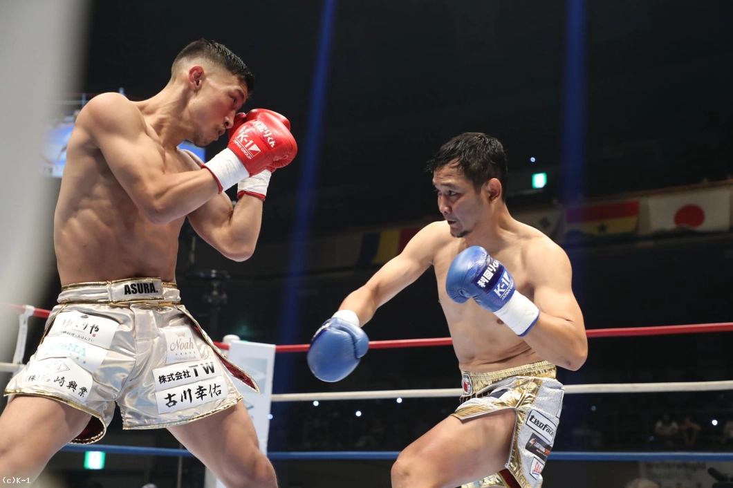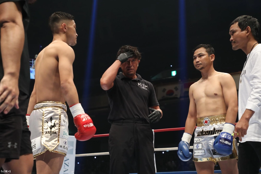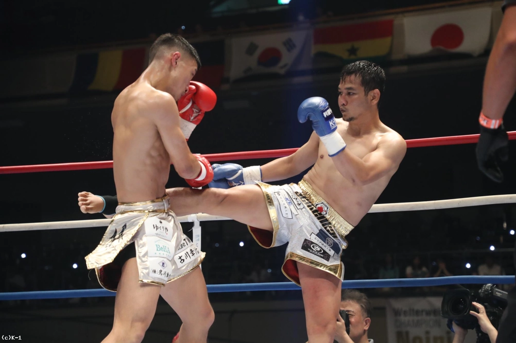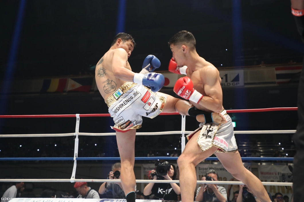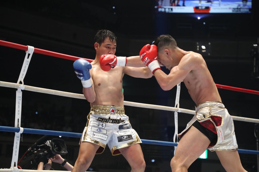 2R、ティントーンは下がらず伊藤とリング中央で攻防。左右ローの伊藤にティントーンは単発ながら的確にボディストレート、左フックとカウンターを飛ばす。伊藤は蹴りとパンチを受けてもひるまず前に出て、ティントーンに連打を振るって2Rを終える。