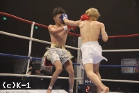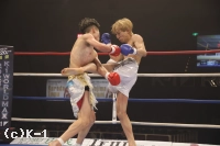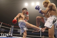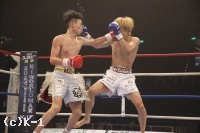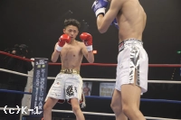 1R、サウスポー構えの元太郎は、ジャブをつきながら強烈なミドルキック。吉村は元太郎の軸足を刈りに行く。打ち合いから元太郎のバッティングに。中断から再開後、吉村はパンチからローキックへつなげる。今度は元太郎の蹴りがローブローに。再開後、吉村がパンチからローへつなげた。