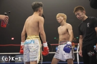 3R、吉村はパンチ連打で追い込んでいく。元太郎は打ち合い、ヒザ蹴り、左右パンチの追い込んでいく。吉村も反撃して打ち合うも、元太郎がやや有利か。判定は3-0で元太郎が勝者となった。