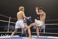 2R、元太郎は前へ出てパンチからロ―キック。さらに元太郎のミドルキックを蹴るが、吉村が倒れてしまいダウンに。立ち上がった吉村に、元太郎がヒザ蹴り。さらに元太郎がバッティングとなり、試合が中断。