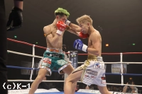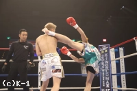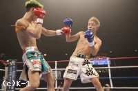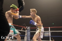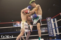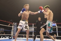 2R、松葉はロ―キックからパンチで逆転を狙う。山脇は、これに耐えてカウンター攻撃を狙うも、松葉の投げで試合中断。再開後、松葉は左フック、右とダウンを奪いに行く。山脇はリーチを活かした攻撃をしたいも、松葉の勢いが上回っているか。