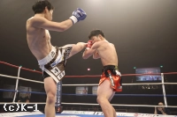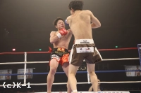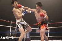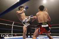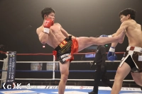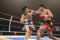 1R、天野は前へ出てロ―キック。原田は左右に構えをチェンジしながら、ロ―キック。天野はミドルキックをヒットさせる。原田は右、左のパンチを放つ。天野は右のパンチを合わせる。原田は左右のフックから蹴りにつなげる。天野は右の強打を放って行った。