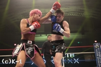 1R、KANAは左手でフェイントをかけながらローキック。プリフティはローキック、右で入っていく。KANAはローキックで崩しながら、右のパンチを見せる。プリフティは左から右。KANAはインローで崩しにかかるも、プリフティの左を受ける。KANAは左ジャブで崩しながら入るも、プリフティの蹴りが顔面をかすめる。KANAはパンチからインローで崩すも、スリップに終わる。最後はKANAがパンチを連打した。