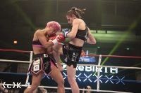 2R、プリフティは左から右の蹴り。左フックでKANAの動きが止まることもあった。プリフティの右から左。KANAはカーフキックを蹴るも、パンチを受けてしまうシーンもあった。プリフティの攻勢が目立つも、KANAはカーフキックを蹴っていく。プリフティの右をもらうKANA。KANAが打ち合うも、下がってしまう場面も。KANAは左、右とパンチを入れるも、ほぼ互角の争いか。