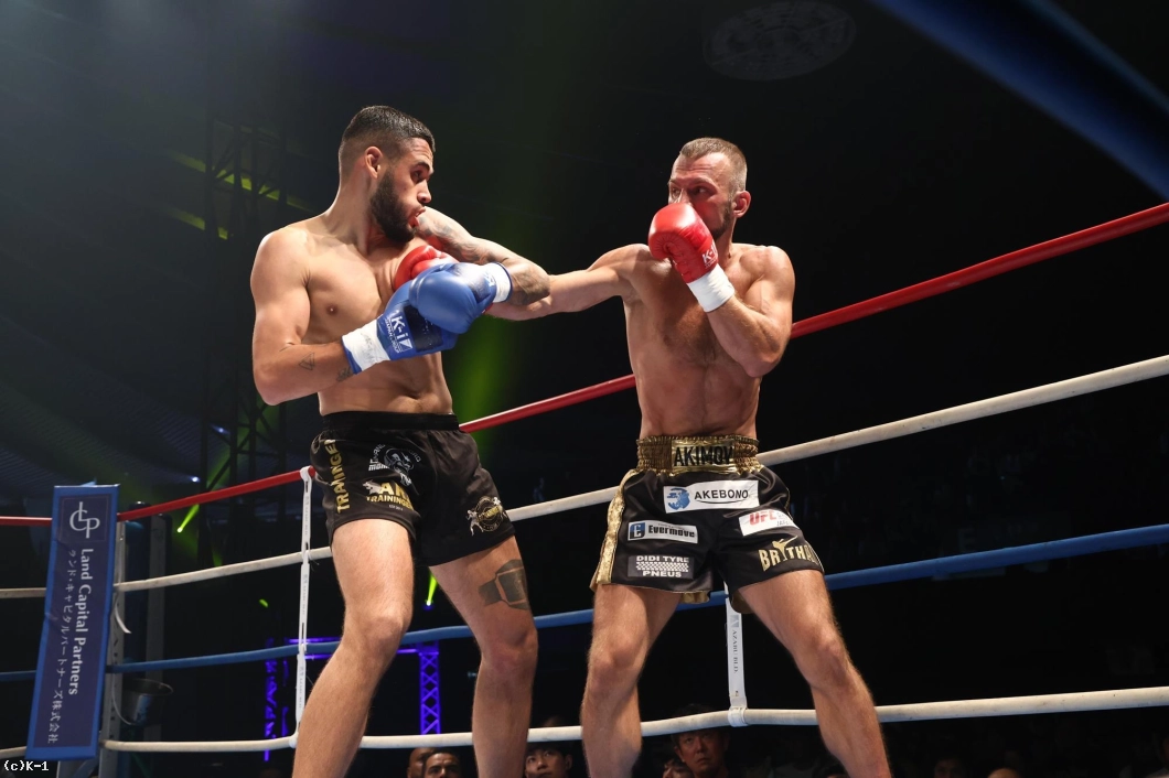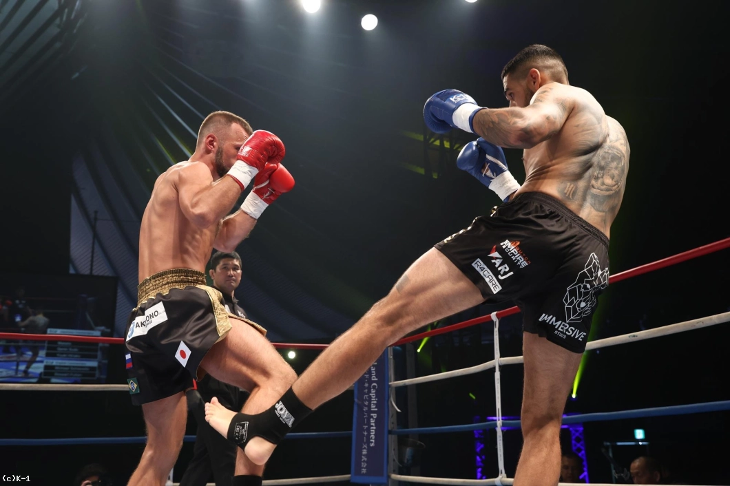 1R、サウスポー構えのアキモフは前蹴り。バグボードは右を入れる。アキモフは、左ローキック。バグボードは前蹴りから試合を組み立てる。アキモフはバックキック、そして左を打つ。バグボードはプレスをかけてヒザ蹴り。アキモフはインロー。バグボードは左をヒット。アキモフは、左ボディストレートを入れてダウンを奪う。バグボードが立ち上がったところでラウンド終了。