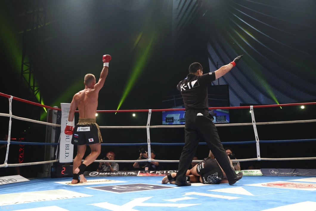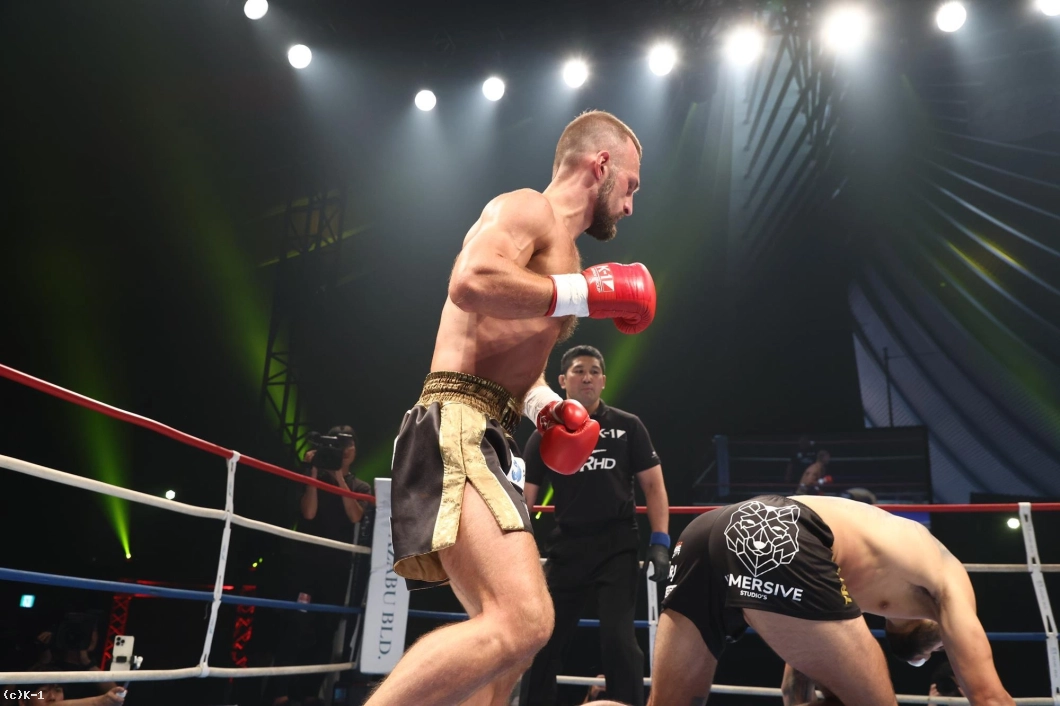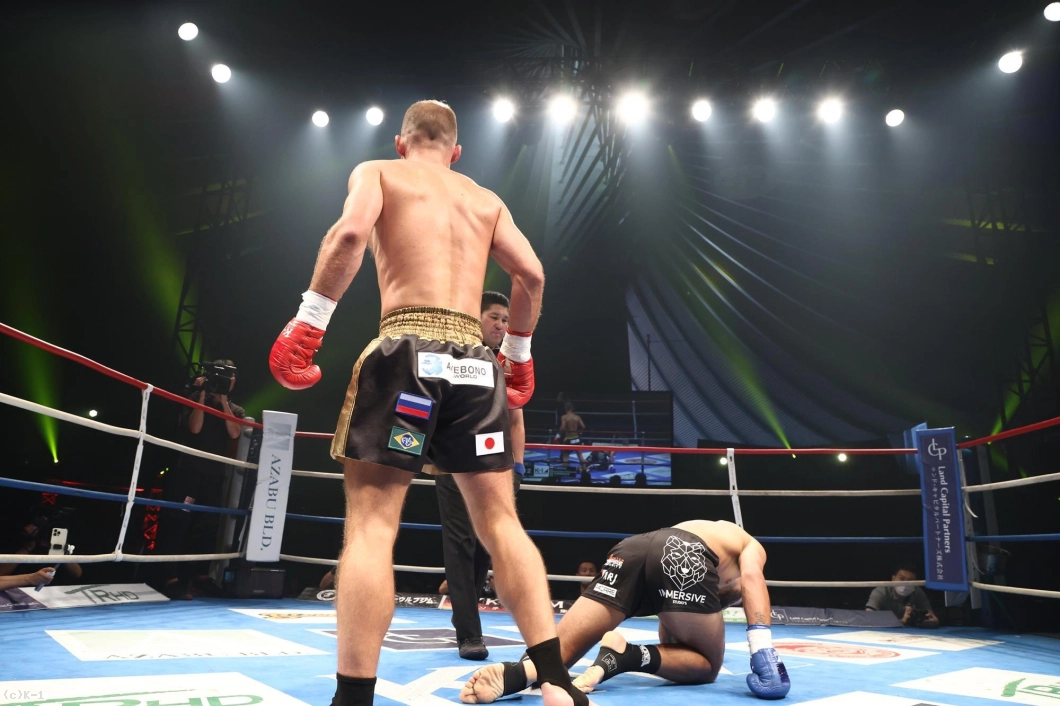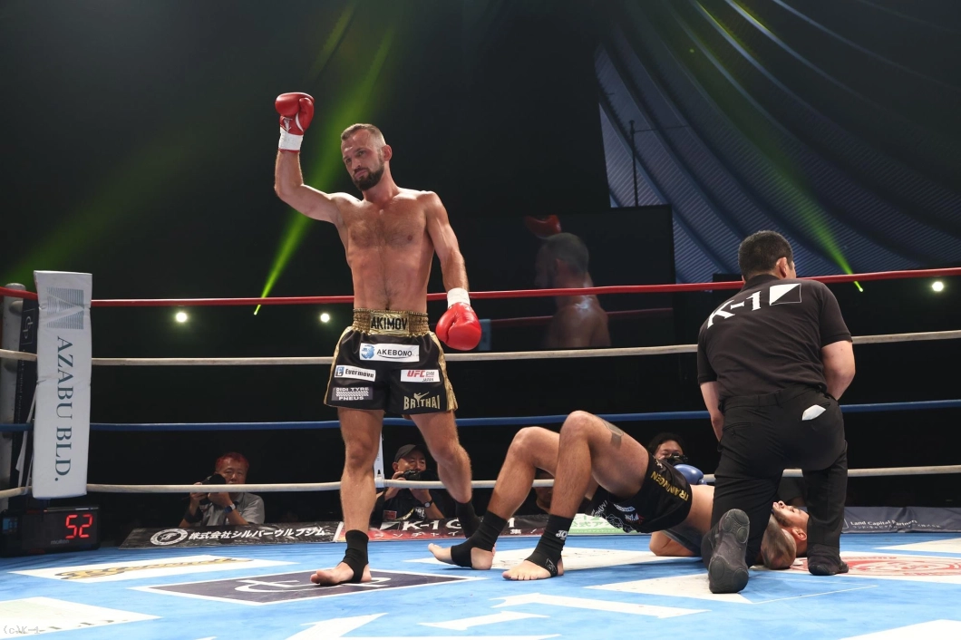 2R、アキモフは左ボディストレート一撃でダウンを奪い、KO勝ち。衝撃の結末が待っていた。