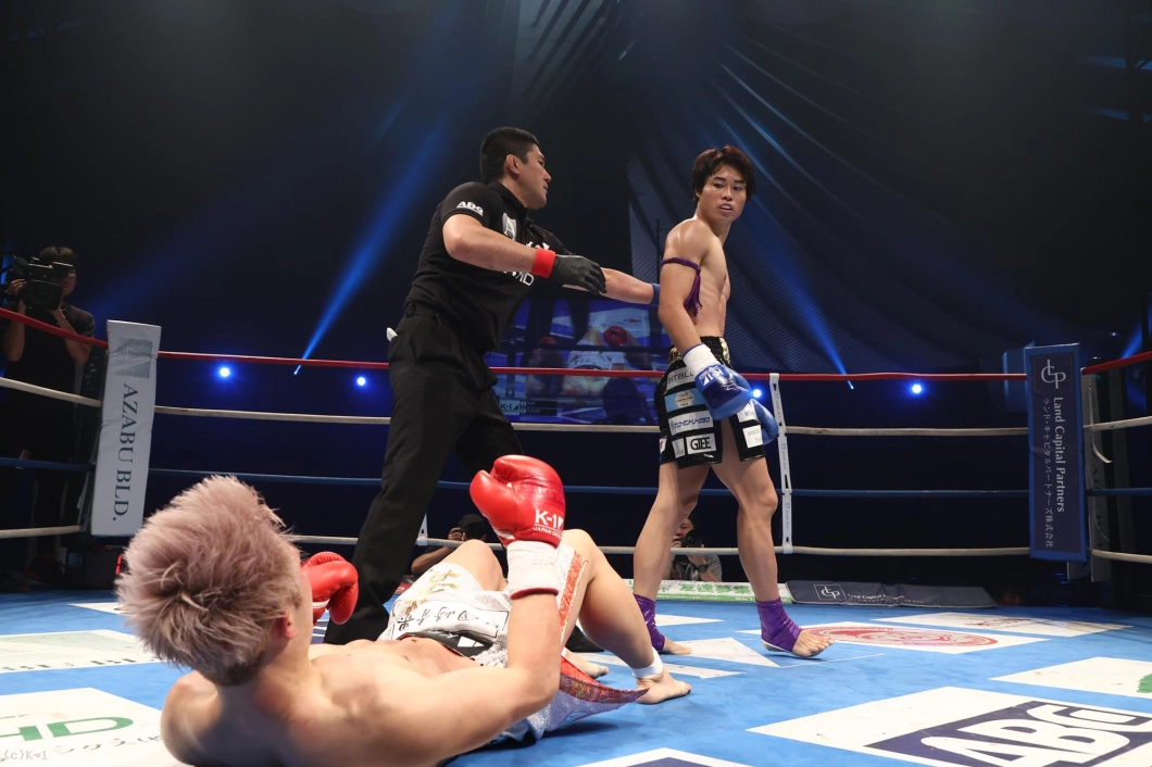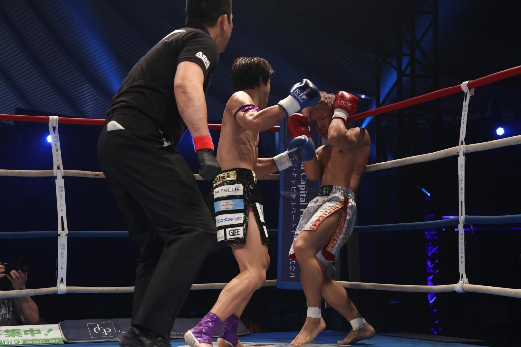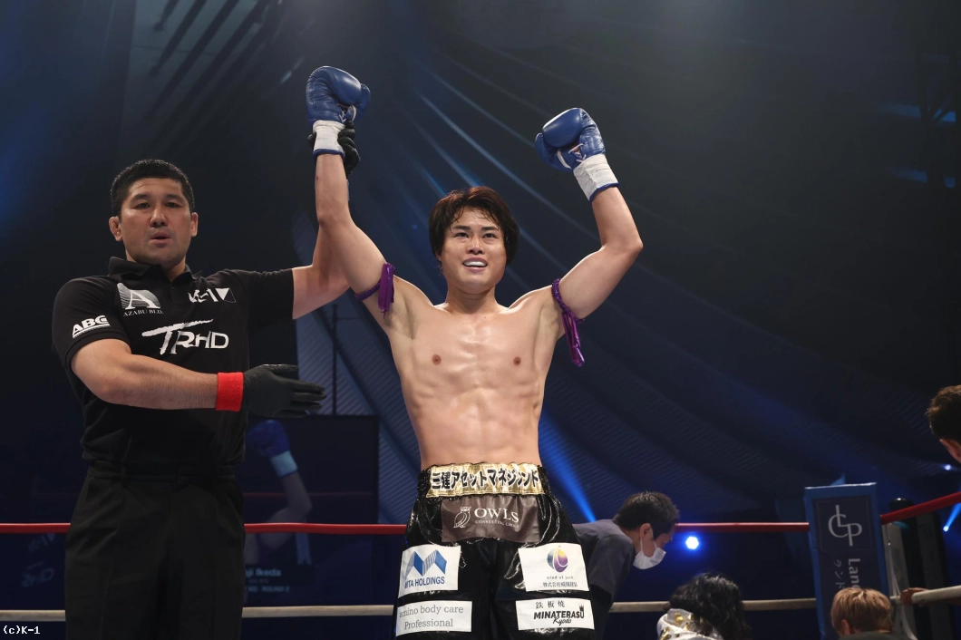 2R、池田はミドルキック、ジャブをついて距離を取る。晃貴は前へ入り、ジャブ、右フック、左フックでKOを狙う。池田は下がりながらの蹴り。池田は右フックでダウンを奪う。立ち上がった晃貴に、池田は左右のフックからヒザ蹴りでダウンを奪い、そのままKOとなった。