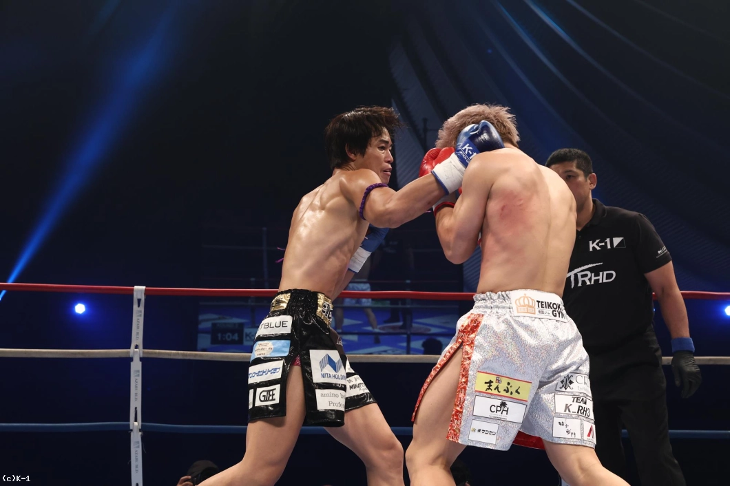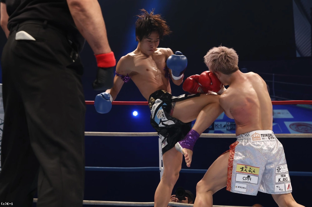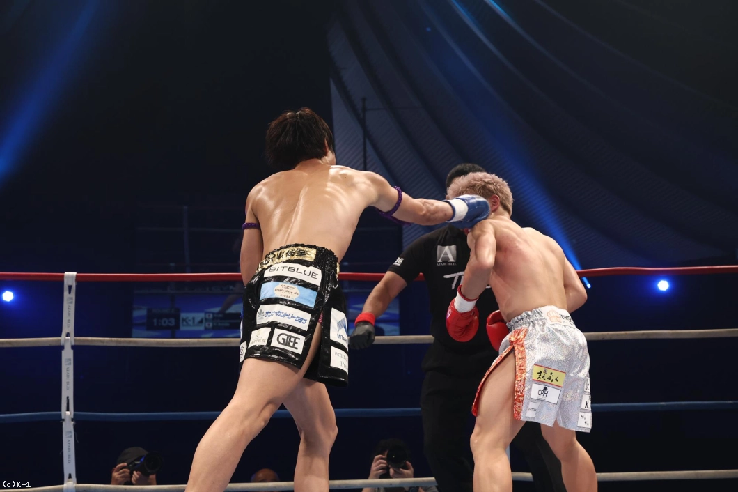 1R、池田は前蹴り、ローキックで蹴りで入らせないように牽制。晃貴は中に入り、右を振りに行く。池田は蹴りも、晃貴は右をヒット。池田は蹴りでいなしているが、晃貴のプレッシャーを受ける。晃貴はインロー、アウトローで崩しつつパンチにつなげる。晃貴の右フック、右アッパーが入る。蹴りとパンチの攻防が見られた。