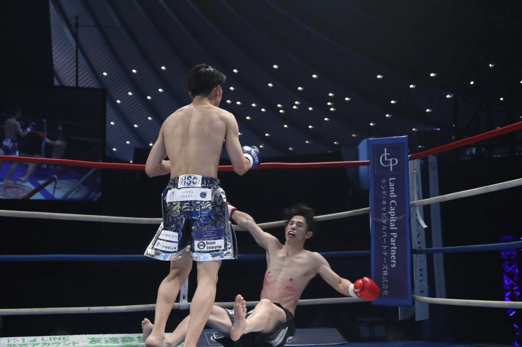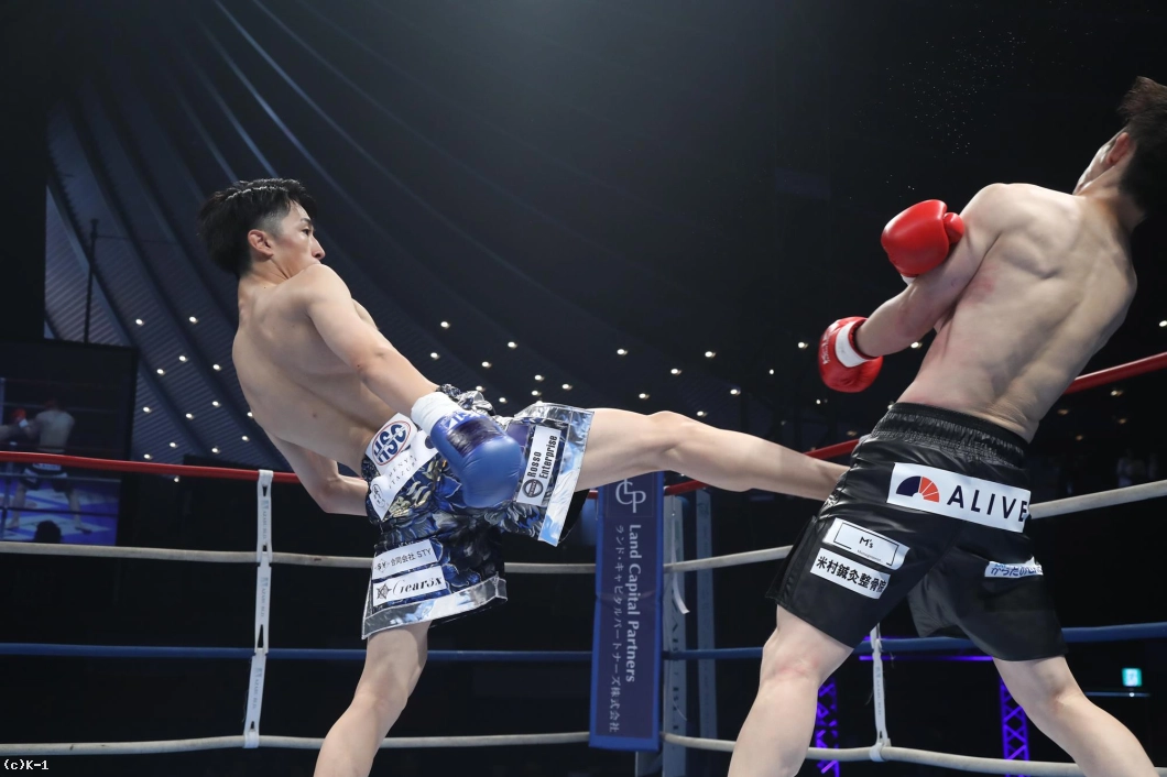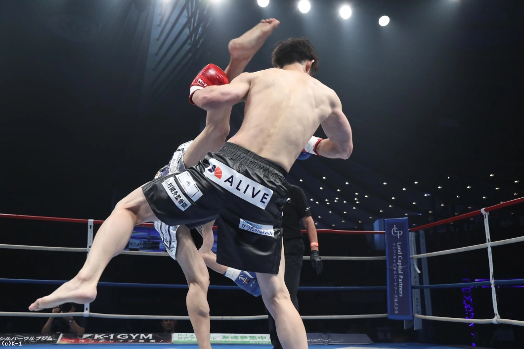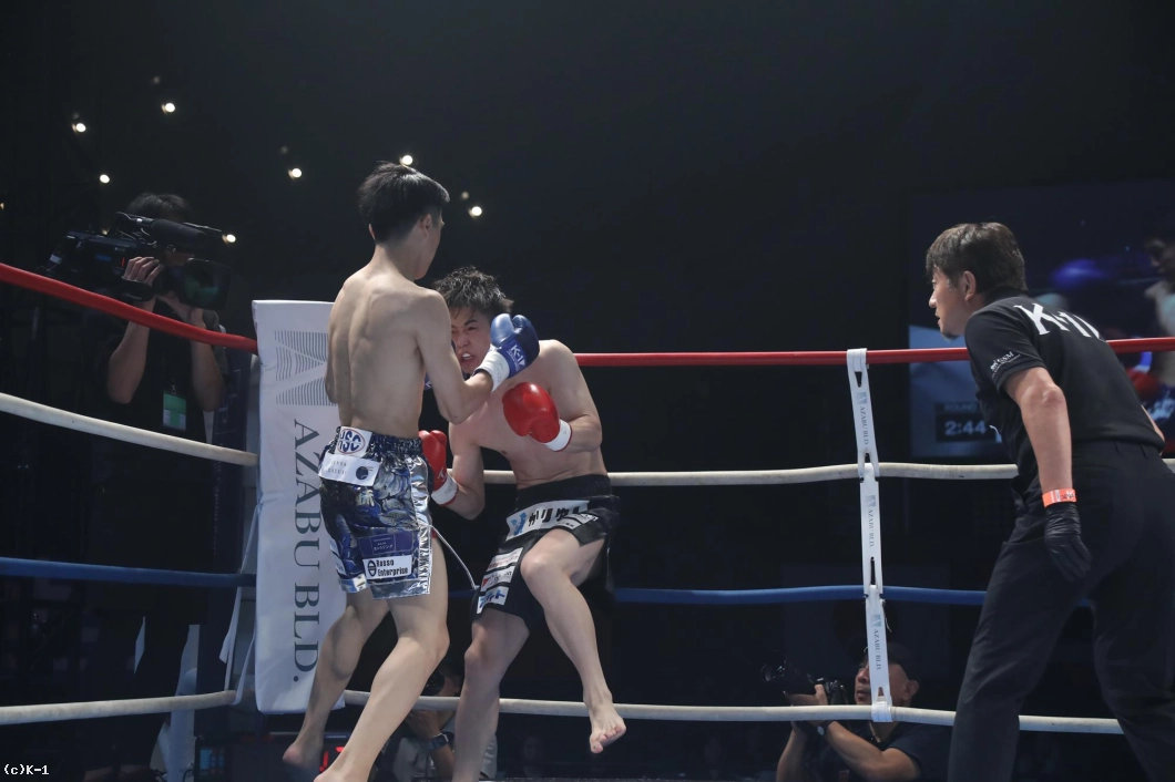 2R、上河内は右をヒットし、上野の顔を跳ね上げる。上野はローキック、前蹴りを顔面へ。上野は上下に蹴りを散らして、揺さぶりをかける。ブラジリアンキック、ローキックを打ち下ろし。最後は飛びヒザ蹴りでダウンを奪い、KO勝ち。衝撃のデビュー戦KO勝ちで上野が実力を示した。