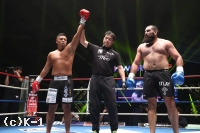1R、イストラテが左右のフックを連打。カードを固める山口だが、イストラテが構わずパンチを積み重ねる。直後にイストラテの首相撲からの左ヒザ蹴りがボディに突き刺さり山口がダウン。しかしレフェリーがストップ(首相撲を続けたため)した後だったため2分間、試合が中断。イストラテの減点1から試合がリスタート。再開直後に、またイストラテが左右のフックで距離を詰める。左腕で山口の頭を抱えたままイストラテが右のパンチを後頭部に打ち込んだため、再び試合が中断。イストラテが二枚目のイエローカードを提示される。試合が再開するも、またもイストラテがストップ後にパンチを見舞ったため、度重なる反則によりレッドカード。山口の反則勝ちとなった。