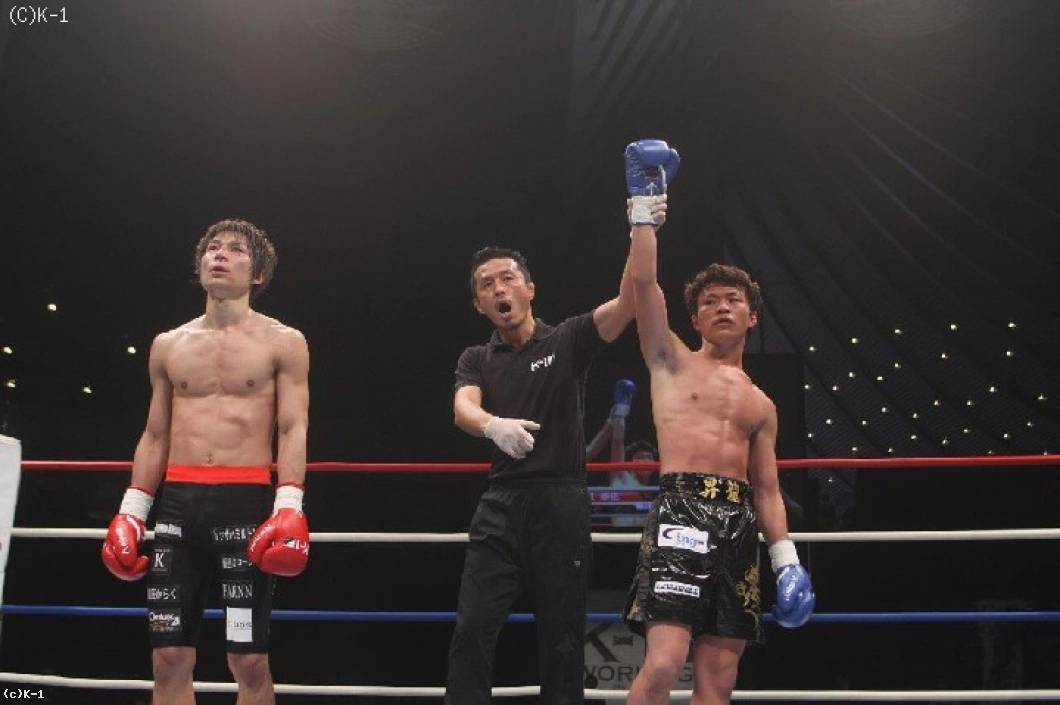 3R、右ストレートで前に出て奥足ローを蹴る石田。出貝もカウンターの右ストレートを合わせる。石田はボディへのヒザ蹴りと左フックで前に出て、出貝も右ストレートとバックキックで応戦する。このまま試合終了となり、ジャッジ3名との1ポイント差で石田が僅差の判定勝利を収めた。