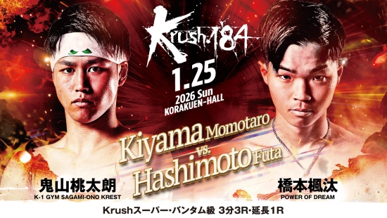 「Krush.184」1.25(日)後楽園 鬼山桃太朗vs橋本楓汰、西元也史vs山本陸が決定!
